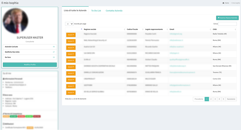 - Accesso a tutte le funzionalità per la singola azienda per il consulente